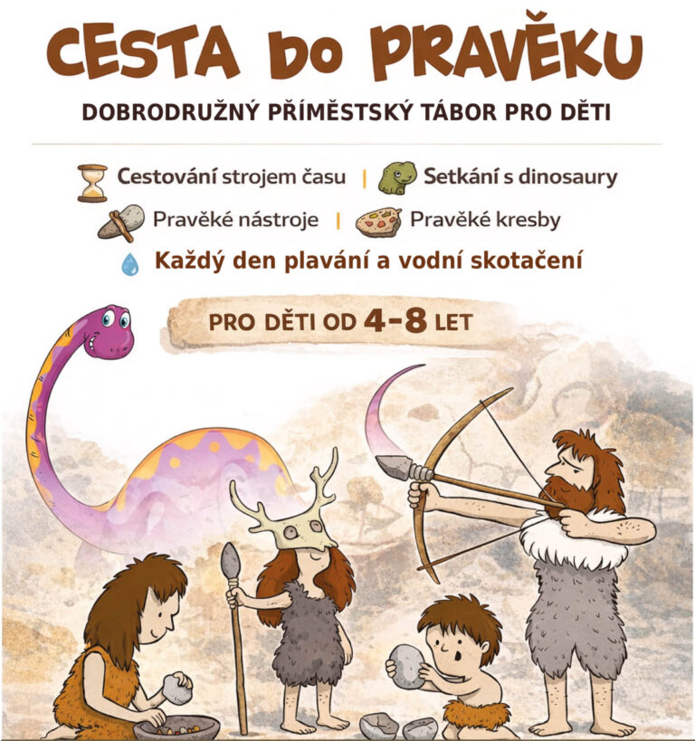 Cesta do pravěku je tematický příměstský tábor Baby Clubu Kenny, který děti hravou formou vtáhne do světa dávných dob. Po celý týden budou objevovat, tvořit, hýbat se a zažívat dobrodružství inspirované životem pravěkých lidí a dinosaurů.